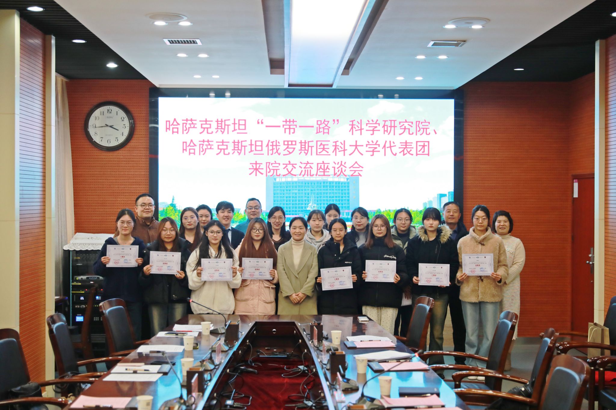 Xianyang Polytechnic Institute (XYPI) welcomed a delegation from Kazakhstan on December 12 for an award ceremony celebrating the "Medical Artistry" China–Kazakhstan Hand-Drawn Anatomy Competition, followed by talks on deepening cooperation under the “Qinling Workshop” overseas education program.